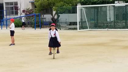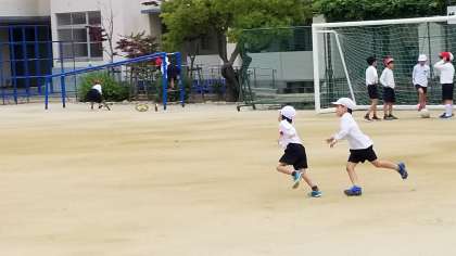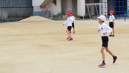 今にも雨が落ちてきそうな曇り空ですが、運動場では元気に遊ぶ児童の姿が見られました。