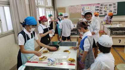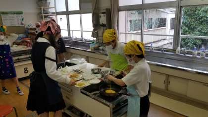 6年1組の調理実習の様子です。