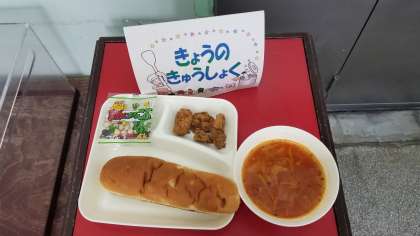 今日のパンは「おさつ」パンです。やわらかくて甘くてとても美味しいパンです。