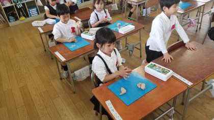 「粘土でパンケーキ作ってる。」と教えてくれました。