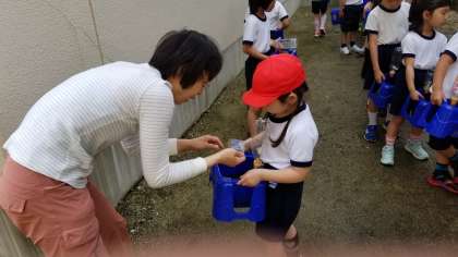 準備ができれば担任の先生の指示で朝顔の種を植えていきます。