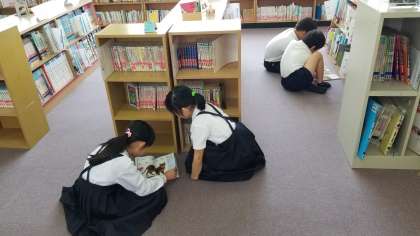 4年2組の読書活動の様子です。誰一人しゃべることなく一生懸命本を読んでいます。