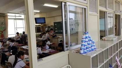 3年1組の算数の様子です。問題の答えを先生に評価してもらっています。子どもたちが互いに教え合う姿がたくさん見られました。