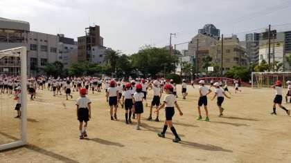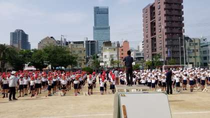 さあ体育朝会が始まります。運動会に向けての準備です。