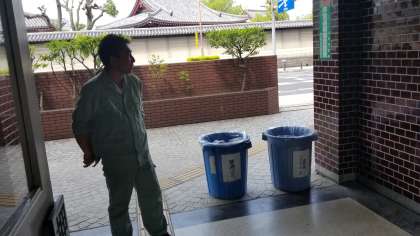 管理作業員の阪口先生がごみ処理の支援をしてくれています。