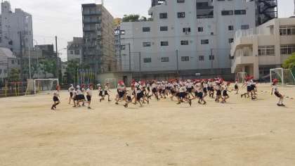 暑い中頑張っています。水分補給やミストシャワーなど体調管理もしっかりと注意しながら指導します。