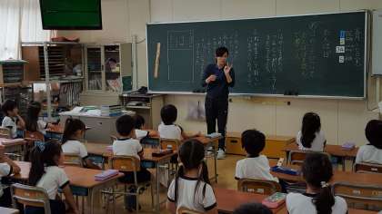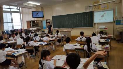 2年生は国語の学習でした。しっかりと話を聞いていました.