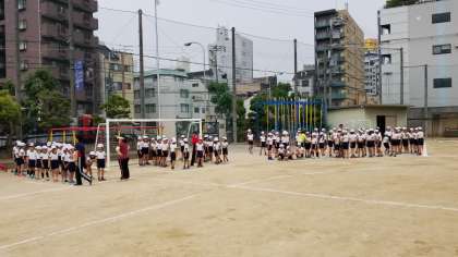 最初に竹内先生から、心を一つにすることの大切さについてお話がありました。先生の話を聞いて、全校児童が気持ちを一つにして頑張る姿が見られました。