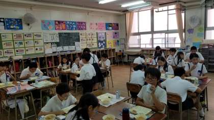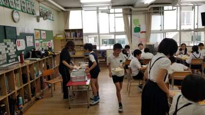運動会の練習の後です。みんなお腹がぺこぺこのようです。