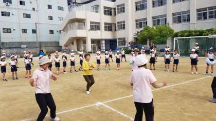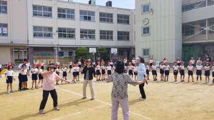 赤組、白組の輪の中に入って一緒に踊っていただきました。