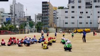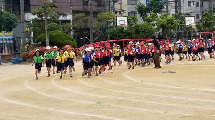 1年生の授業の様子です。運動会の競技の練習です。入場から練習しています。