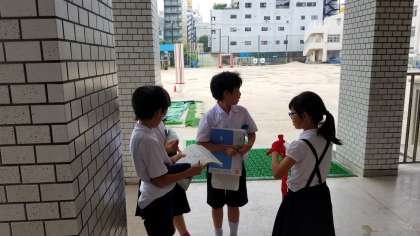 4年生が社会科の授業で使う資料づくりをしています。学校にある水道の蛇口の数を調べています。