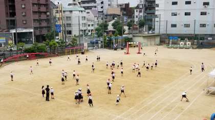 今日は運動場でたくさんの児童が遊んでいます。この後雨が予想されます。たくさん運動場で遊んでほしいと思います。