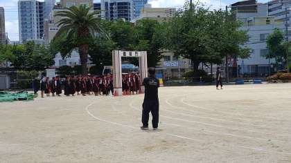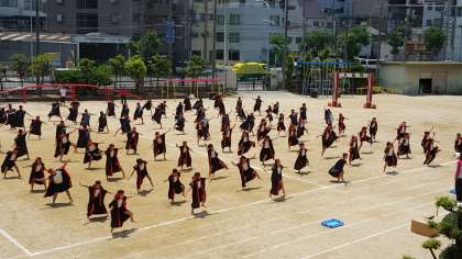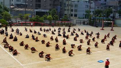 天候の関係で今日が最初で最後となりました。踊りも組み体操もすごく気合が入っていました。