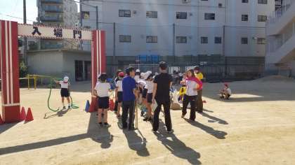 運動会の準備係が最後の確認をしています。