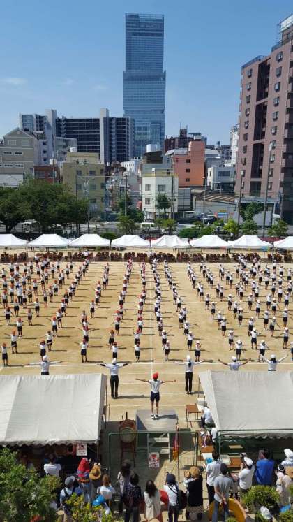 プログラム1番はラジオ体操です。きれいにそろっていました。