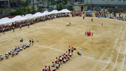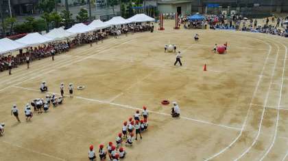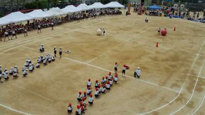 2年生の「ころがせ!大玉」は、ペアが息を合わせてやらないとうまく転がりません。皆さんうまく転がりましたか?