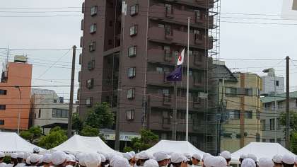 校長先生の講評の後、国旗・校旗が降納され終了です。