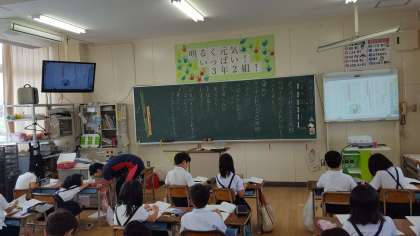3の1は、海の生き物をスクリーンに映して、図画工作をしていました。