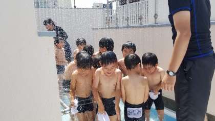シャワーが気持ちよさそうです。いよいよプールの中に入ります。
