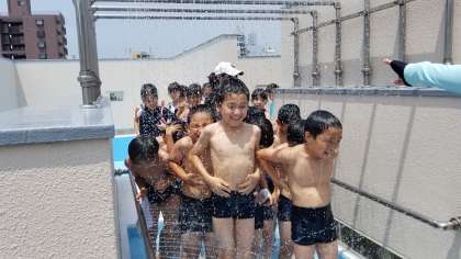 3年生のプール開きの様子です。代表児童の決意発表からスタートしました。