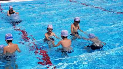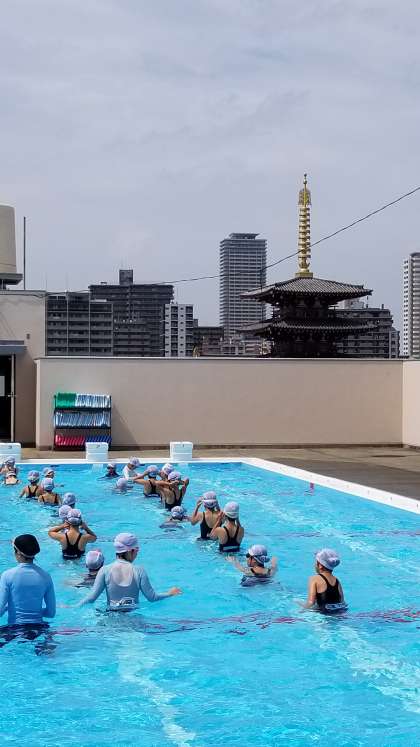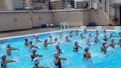4年生のプール(体育)の様子です。音楽に合わせて水中でいろいろな動きをして水慣れをしていました。最後は蹴伸びからクロールを練習していました。