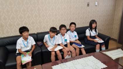 4年2組の児童が国語の授業で新聞づくりをしています。それで記事を書くために校長室を訪れインタビューをしました。昔の運動会のことや天フェスのことなど新聞に載せるようです。どんな記事になるのかすごく楽しみです。