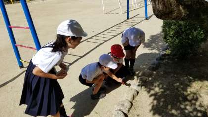 4年生の児童が「校長先生、アリの大軍をみつけた」と教えてくれました。葉っぱのしたにたくさんのありがいました。