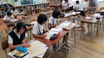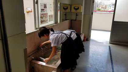 学習をしたり、担任の先生とお話をしたりしています。亀の水槽を洗ってくれている児童もいました。