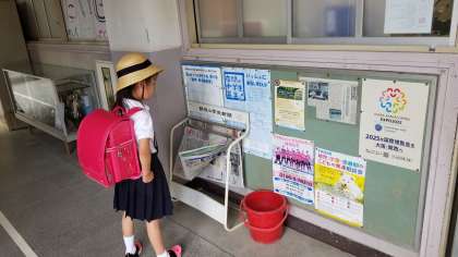 帰りに職員室に寄るように言われて、先生を待っています。待っている間に掲示物を見ています。