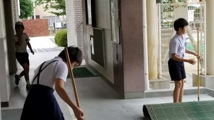 朝の係活動です。放送委員、美化委員の皆さんが活動しています。しっかり自分の仕事を頑張る。「かっこいい」ですね。