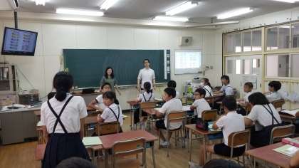 6年1組の英語活動の様子です。とても活発に学習しています。笑顔もたくさん見られ、楽しい授業です。英語をどんどん好きになってほしいと思います。