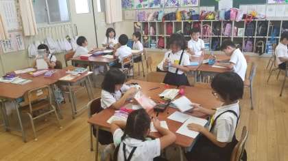 2年2組の授業の様子です。お楽しみ会の準備をしています。