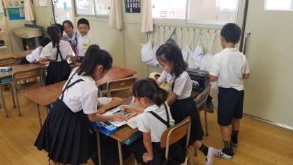クイズや筆箱遊び、折り紙など自分たちで考えた遊びを楽しんでいます。