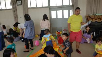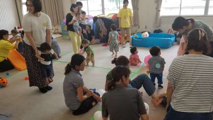 本日、本校の多目的室で子育て支援サークル「ひまわり」の活動がありました。子どもたちの健やかな成長を願って地域や区役所が連携して活動支援しています。