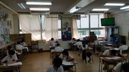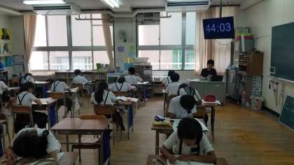 5年生が漢字検定を受けています。昨年度4年生の時にインフルエンザのため延期した漢字検定を本日受験しています。自分のめざす級を獲得できるように頑張っています。