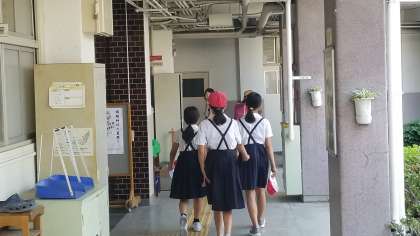 6年生が育てている稲に水やりをして帰るところです。「仕事をした」という感じが後ろ姿から伝わってきます。