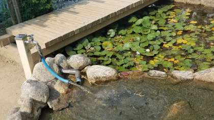 ザリガニ池も新しい水をいれて水量、水温ともに調節しています。