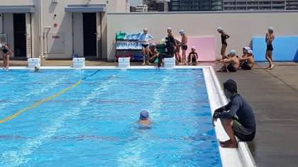 大会に出場する子は、自分の種目の泳法を確かめるように、泳力を高めたい子は、スキルの向上を目指して一生懸命に泳いでいました。