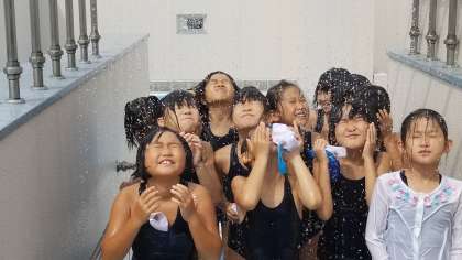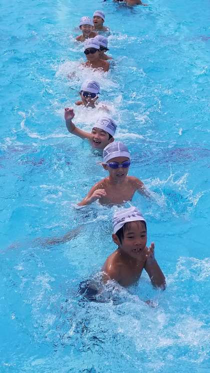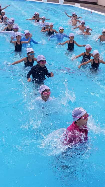2年生の水泳の様子です。真っ新の水が気持ちよさそうです。
