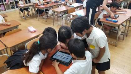 下の写真はタブレットを使って何をしているのでしょうか。