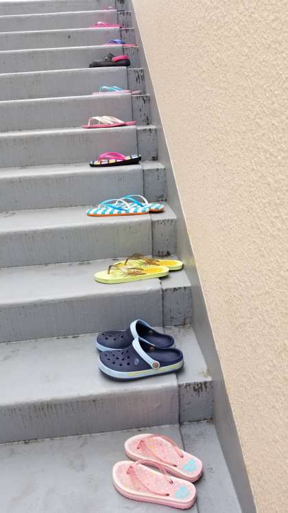 さすが5年生です。サンダルも階段を活用してきれいに揃えています。