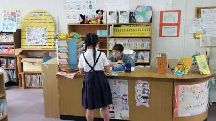 今日はティアラさんが来てくださいました。図書館でいっぱい本を読みましょう。