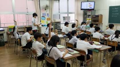 5年2組の英語活動の様子です。みんな積極的に授業に参加しています。