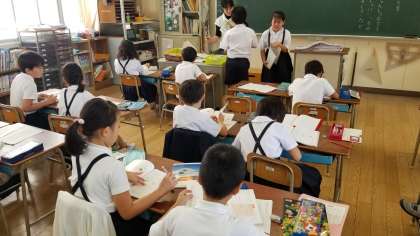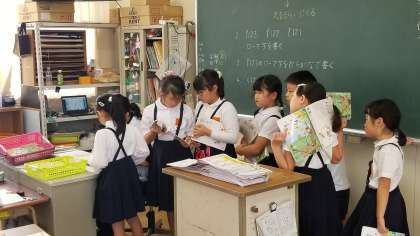 3年1組の授業の様子です。ローマ字の学習です。先生に○をもらえるでしょうか。