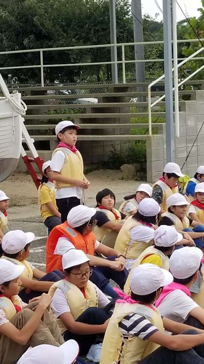カッター体験終了後、活動の振り返りがありました。活動で学んだことや、感じたことを発表しています。