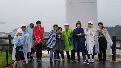 最終ポイントの、電力発電の風車まで、海岸線、街中、山道をハイキングして進みます。