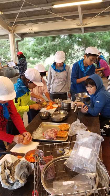 火起こし、調理など、自分たちの役割を果たしています。