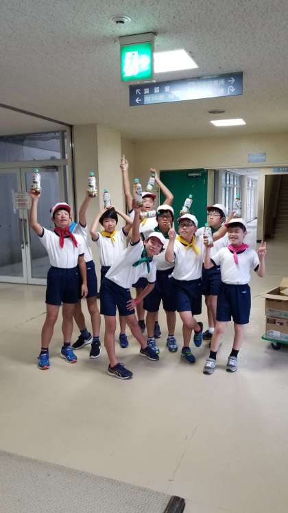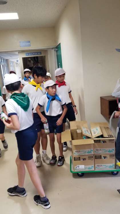 活動中のお茶を配っています。今年は暑い日もなく、少し余っているみたいです。