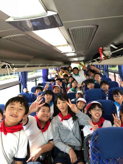 1号車の様子です。最初のトイレ休憩をすませ、バスは淡路島を北に走っています。